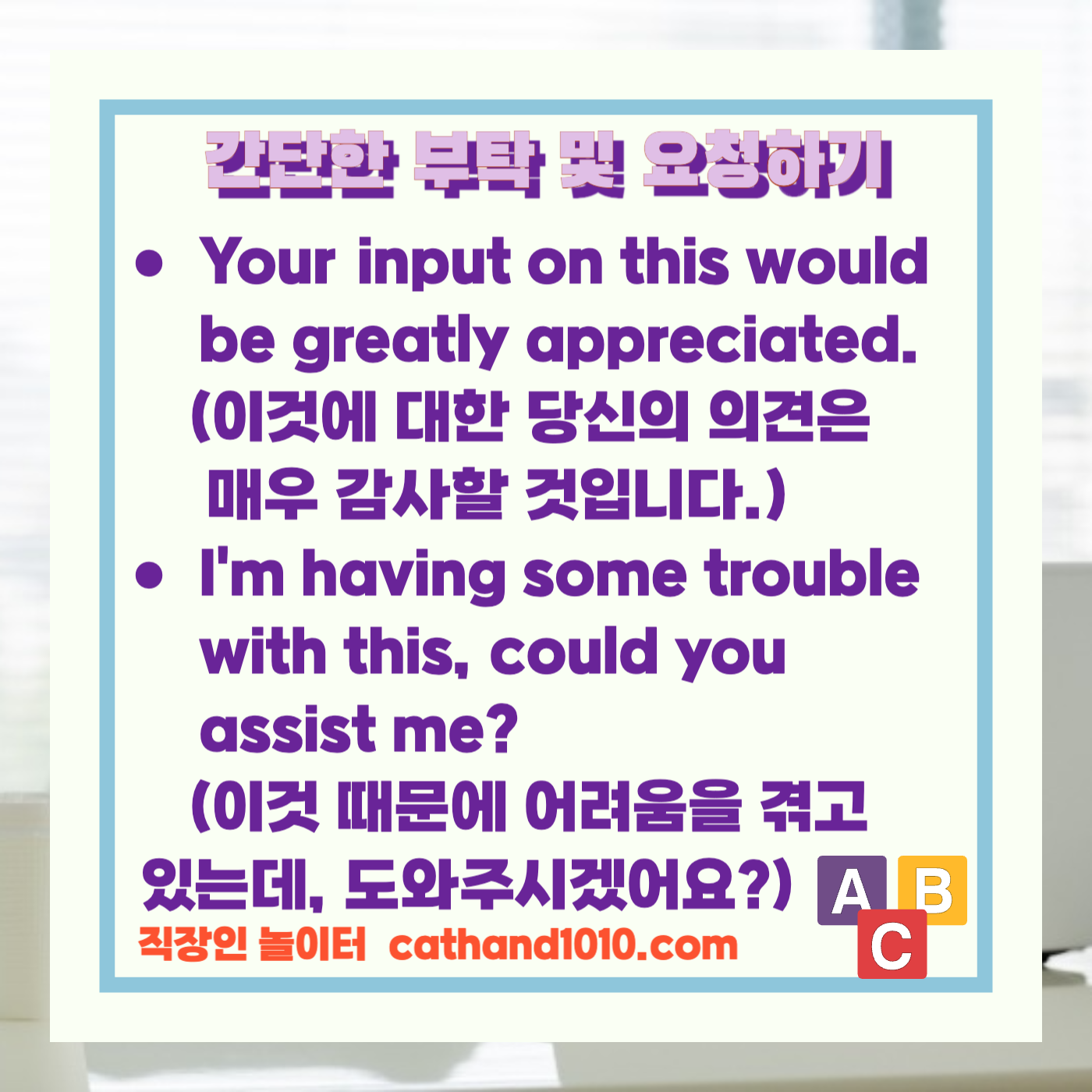 오늘은 좀 더 격식 있거나 정중하게 도움을 요청할 때 사용할 수 있는 영어 표현들을 공부해볼 거예요.