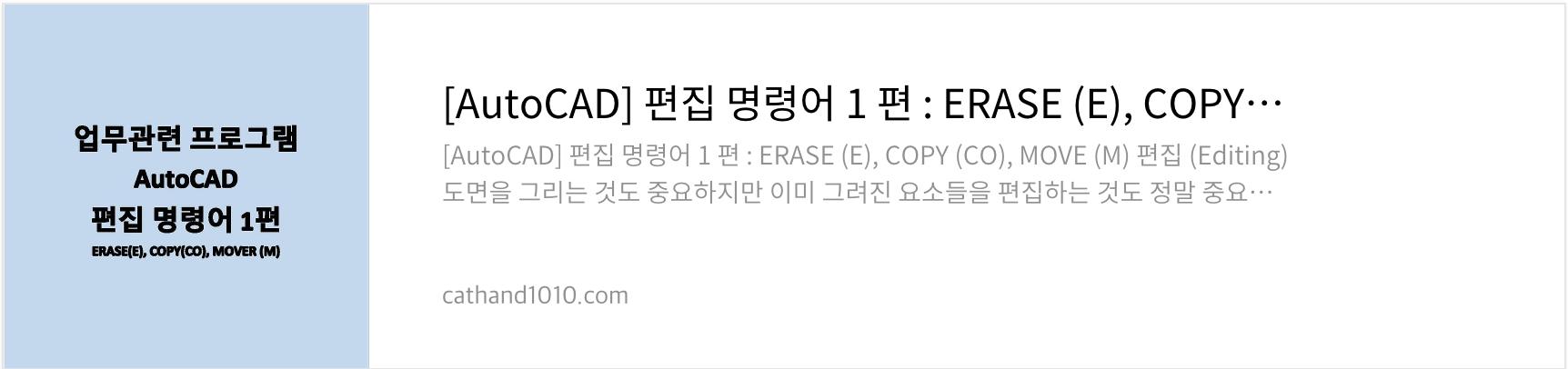 | [AutoCAD] 편집 명령어 1 편 : ERASE (E), COPY (CO), MOVE (M) (0) | 2025.02.17 |